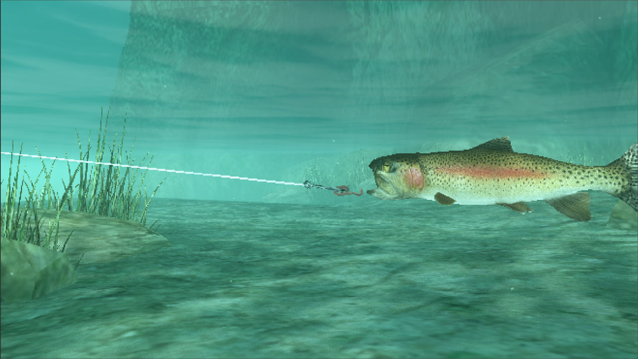 海岸から魚を探して見つけたらキャスト、魚が針に食いついたらリールを巻き、魚の動きに合わせて釣竿を調整し、糸が切れないようにする。糸は障害物に引っかかると曲がったりと物理演算が細かい。